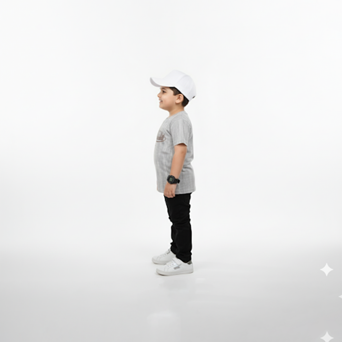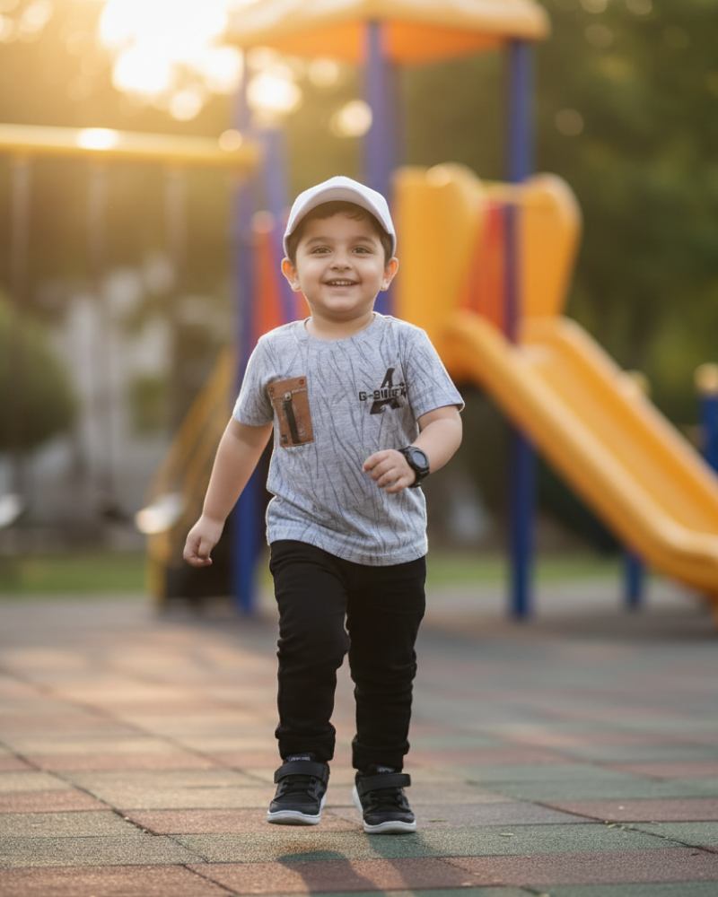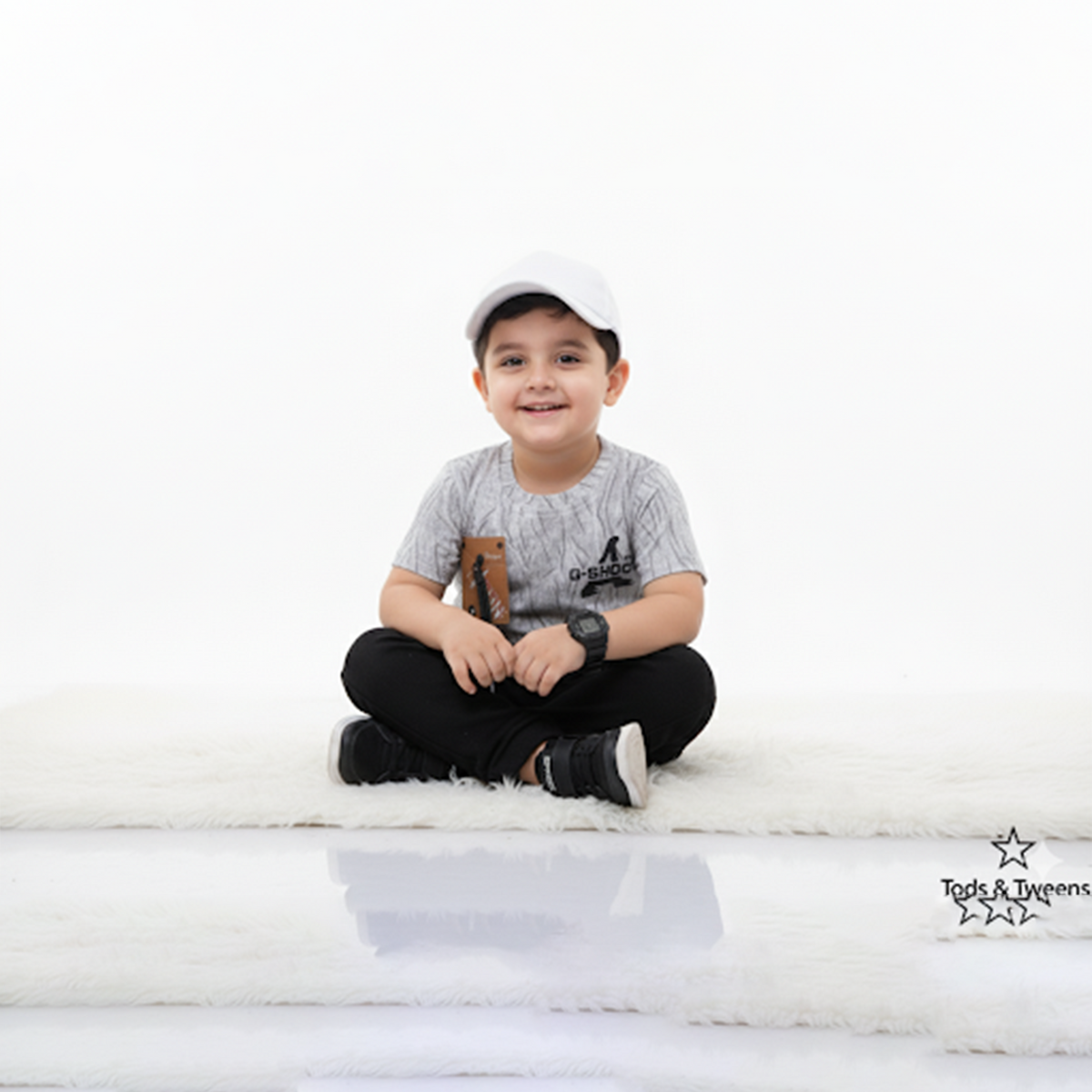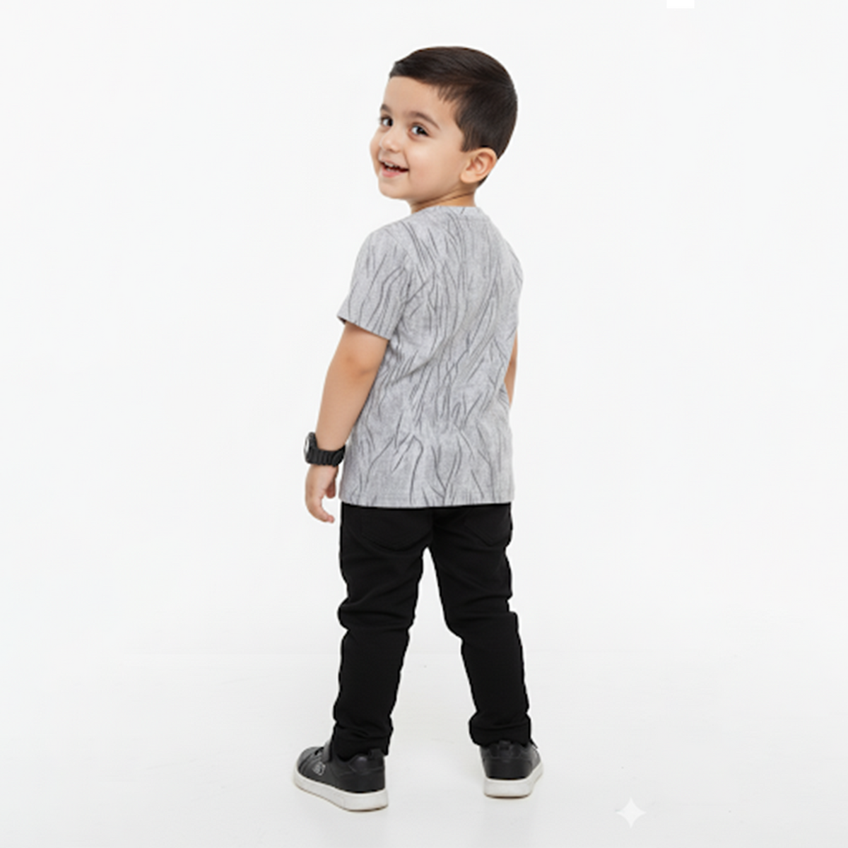 Grey Crinkle-Textured Casual T-Shirt with Faux Leather Patch - 1-2 Years