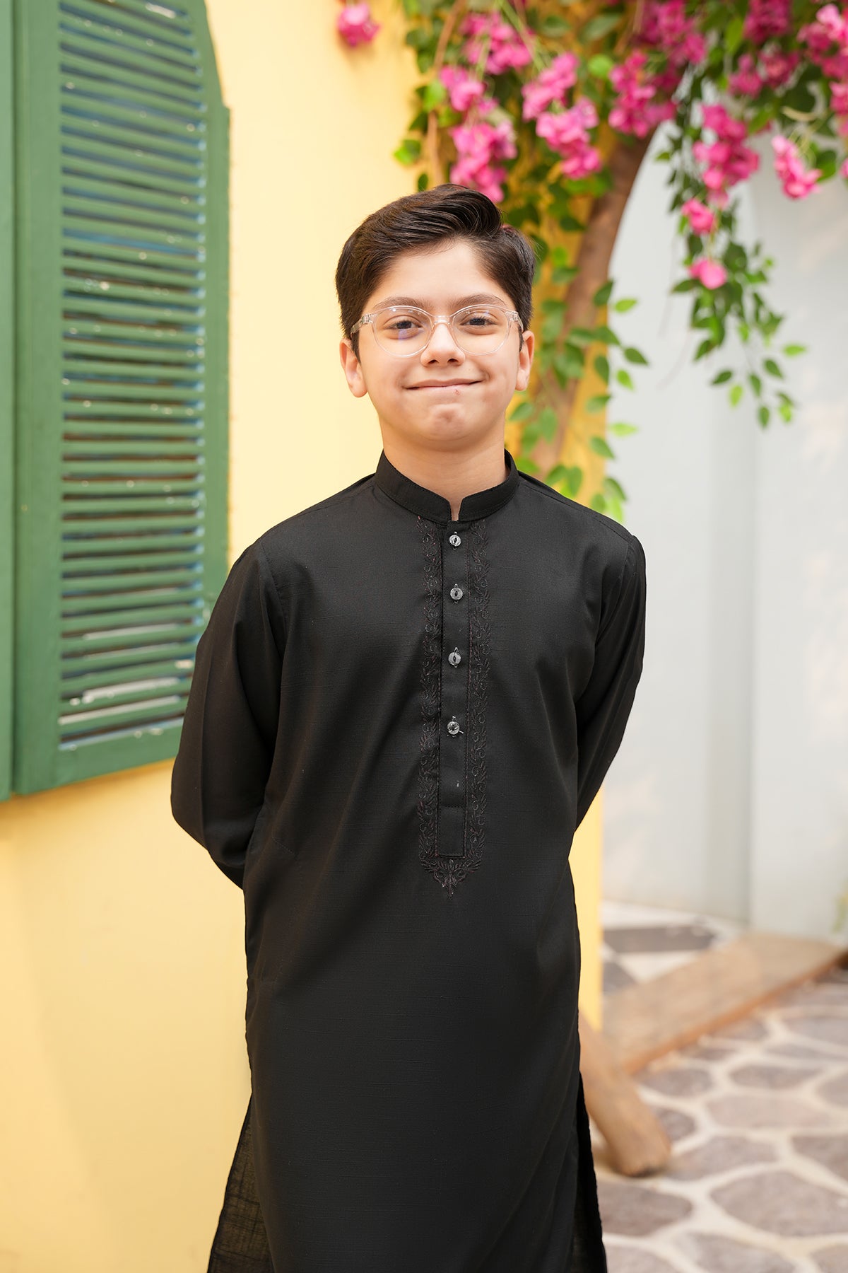Introduce a touch of modern class to your ward’s festive wardrobe with the Zahan ensemble. This deep charcoal green 2-piece set is designed for the young gentleman who values subtle distinction. Featuring intricate geometric threadwork along the neckline, it bridges the gap between heritage design and contemporary color palettes.