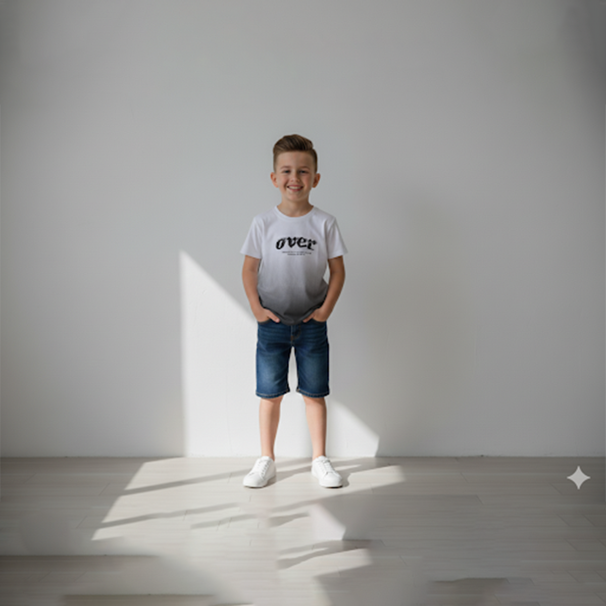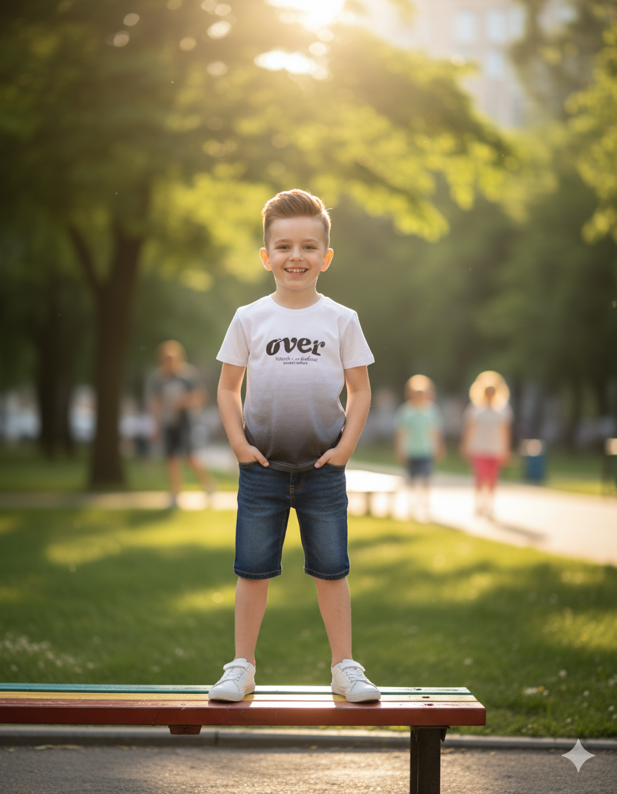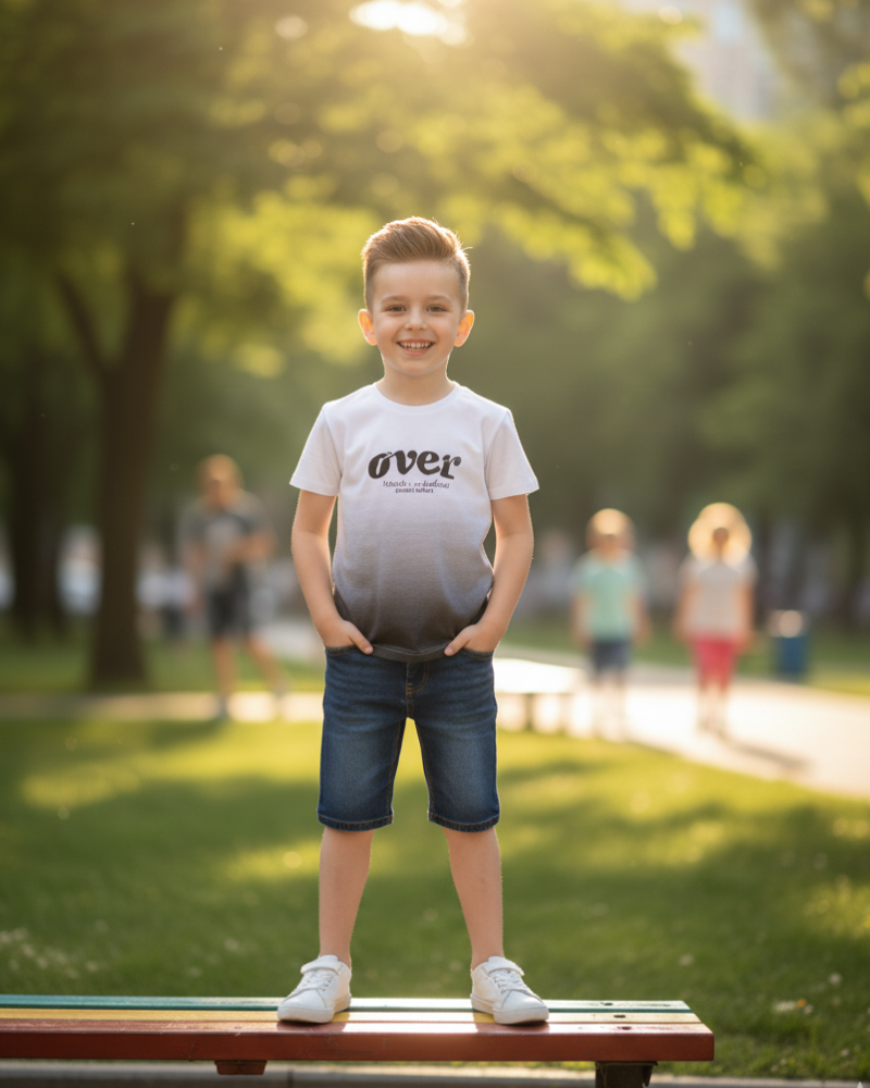 White to Grey Gradient “OVER” Graphic T-Shirt - 2 - 3 years