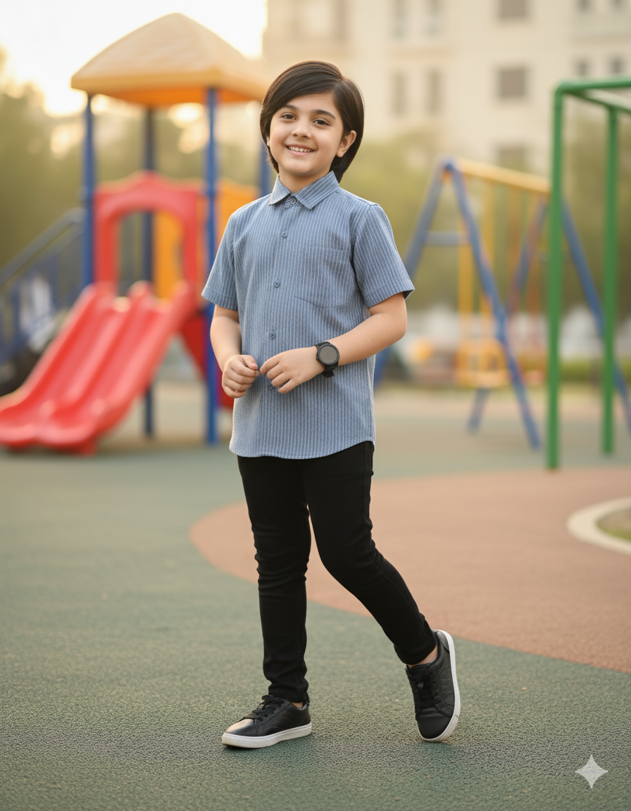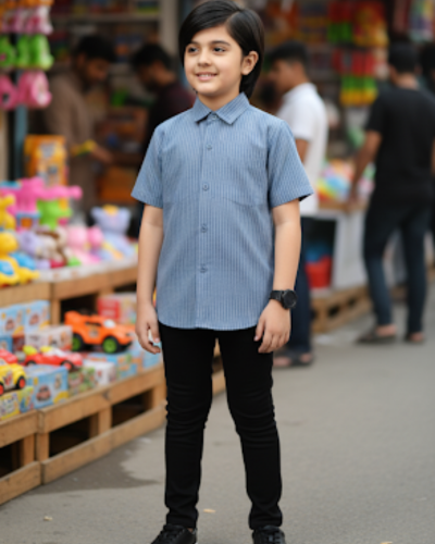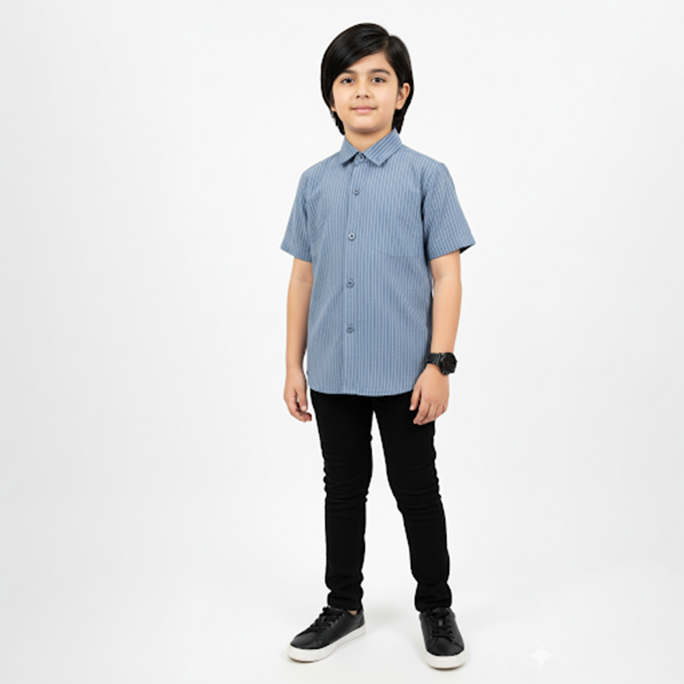 Light Blue and White Striped Dress Shirt - 2-3 Years
