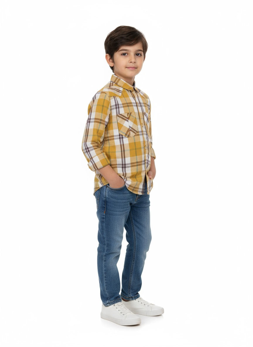 Colour: Mustard Yellow with White and Brown Plaid