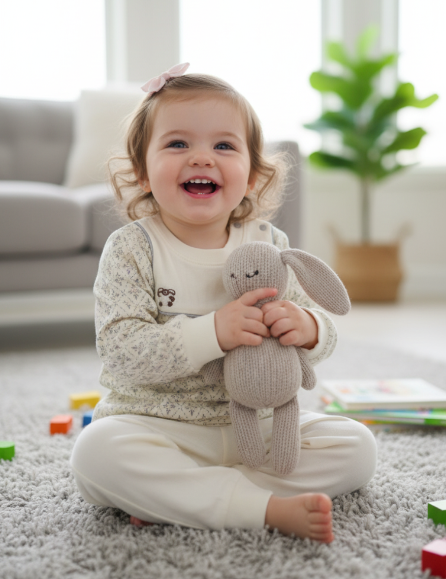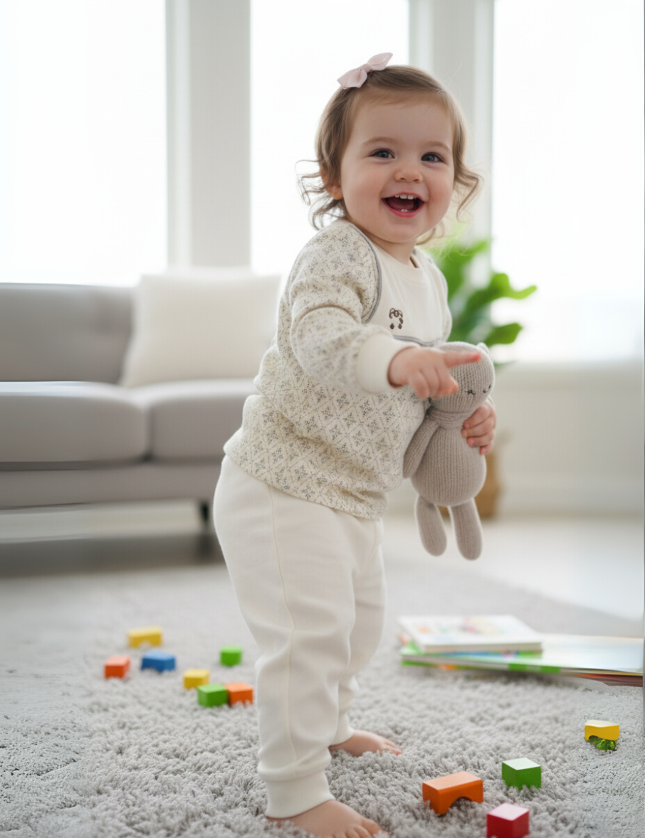 Colour: White with Grey Accents and Brown Bear Patch Details