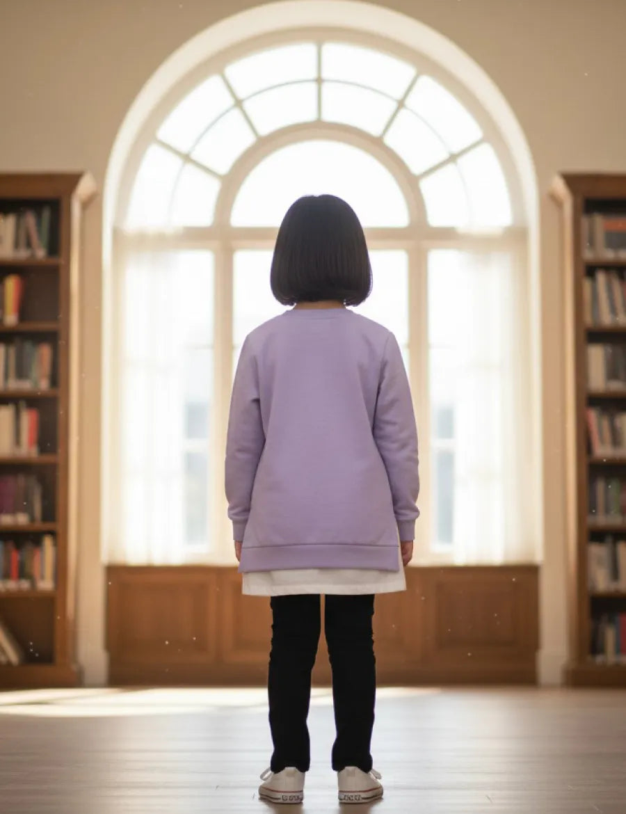 Hem Detail: Fluffy or feather-like trim in a light pink/peach colour along the bottom edge of the skirt.
