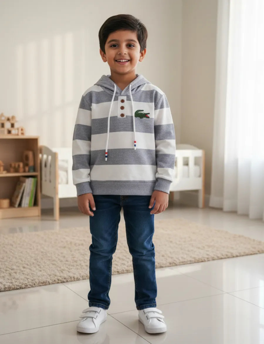 xDetails: Front Embroidered Logo (Crocodile), Drawstring Hood, Partial Button Placket, Ribbed Hem & Cuffs